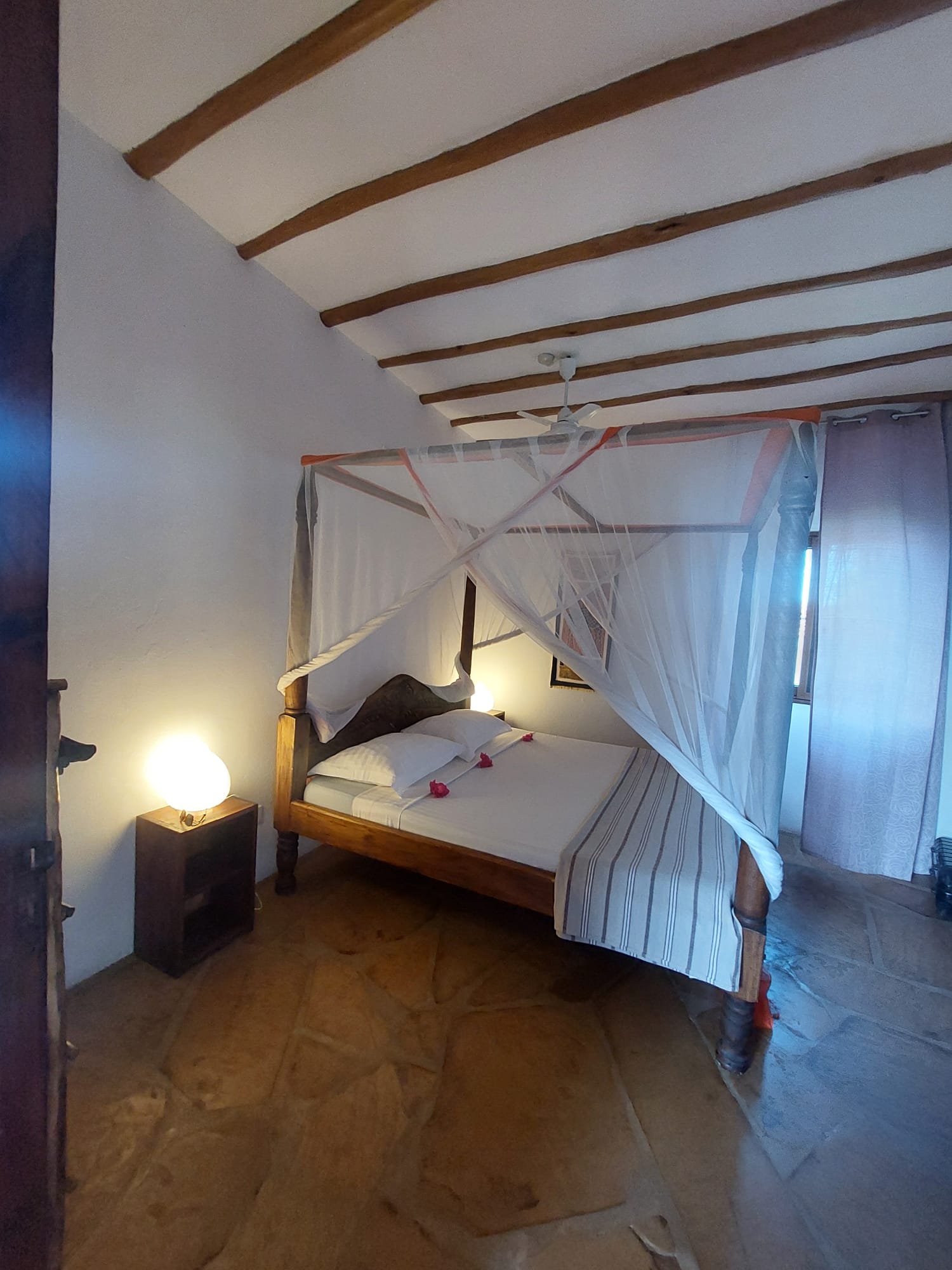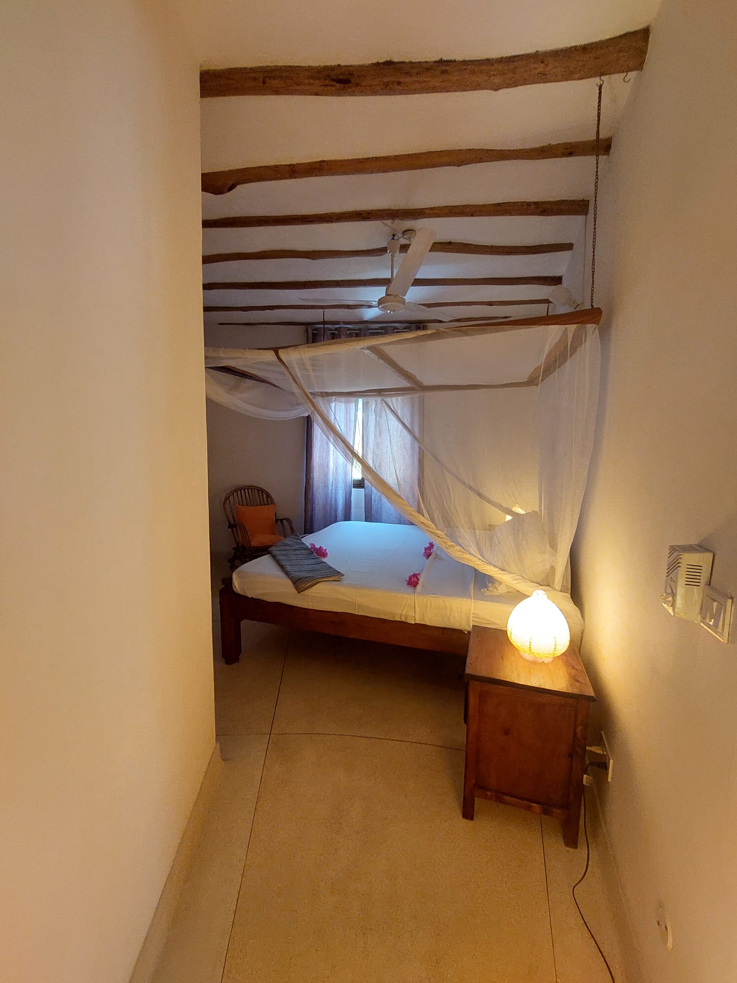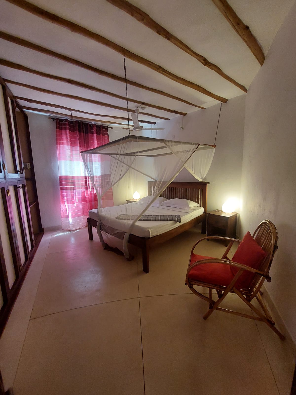 • In-Room Comforts: All bedrooms feature Air Conditioning (A/C), ceiling fans, and mosquito nets. The design typically incorporates cool coral walls and high ceilings to maximize comfort in the tropical climate.