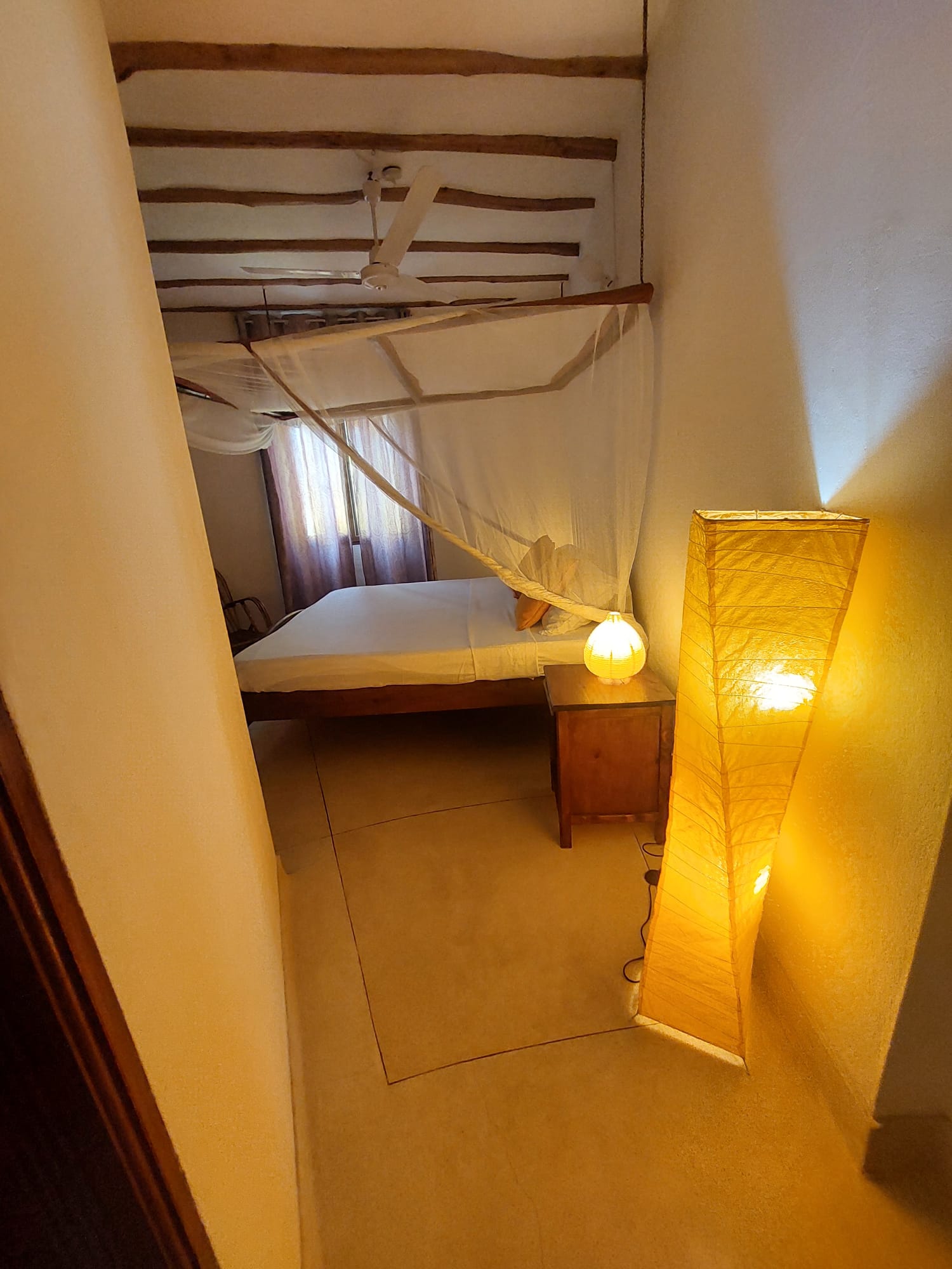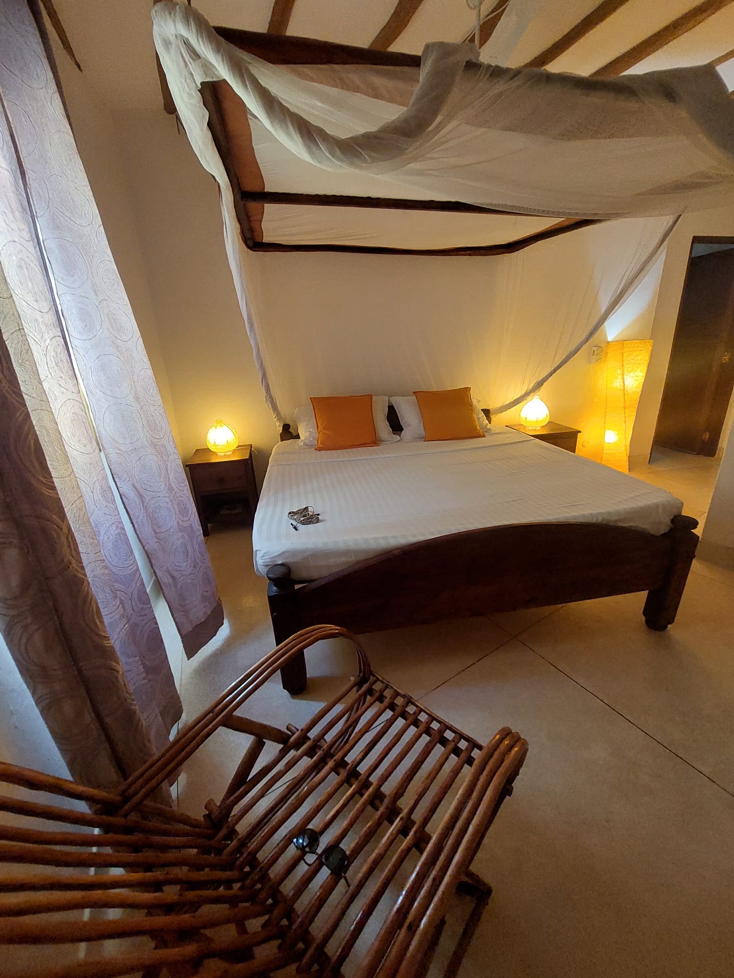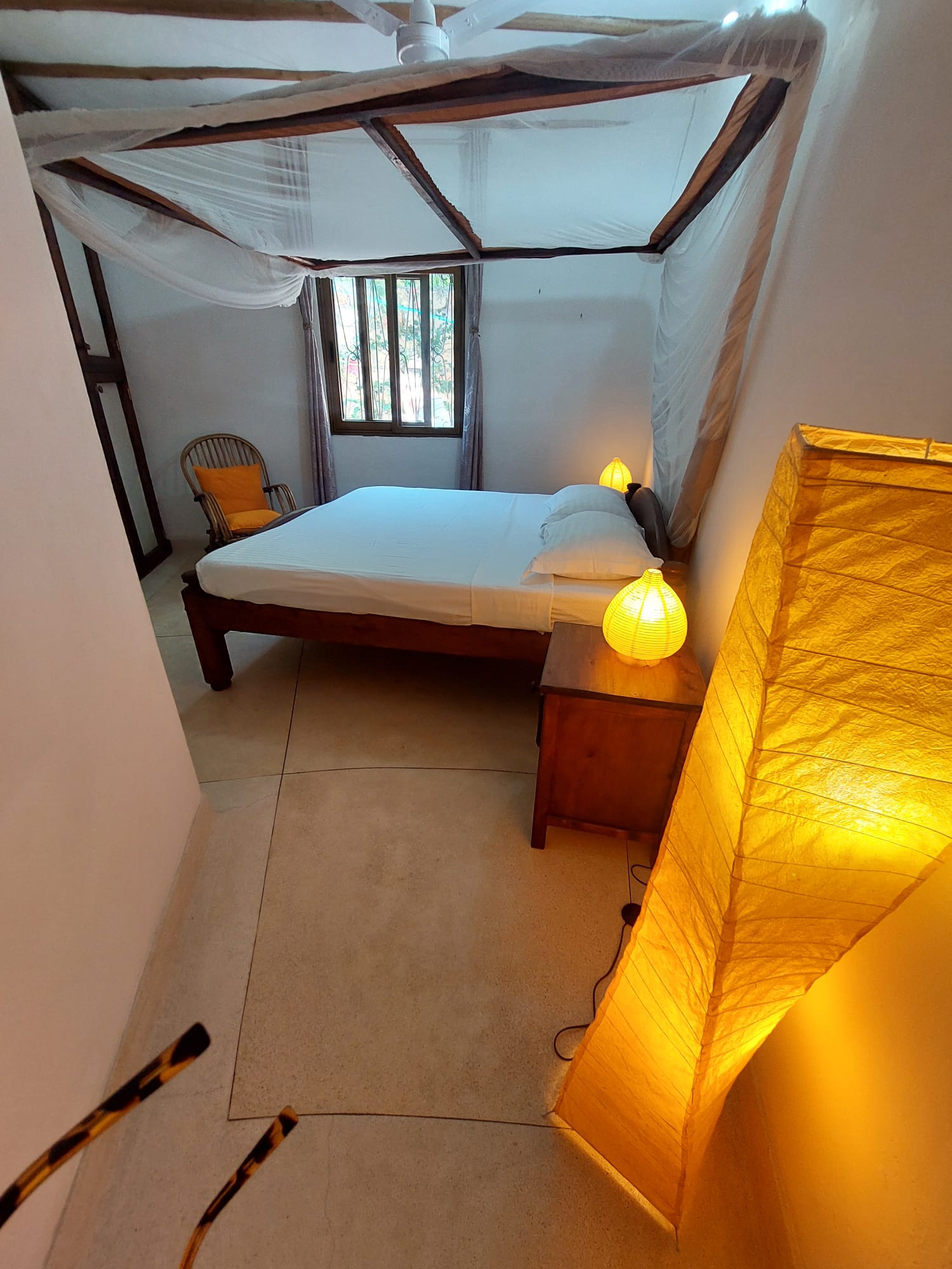 • In-Room Comforts: All bedrooms feature Air Conditioning (A/C), ceiling fans, and mosquito nets. The design typically incorporates cool coral walls and high ceilings to maximize comfort in the tropical climate.